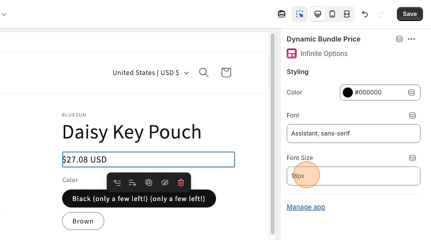 Click into the **Dynamic Bundle Price block** to adjust the styling settings.