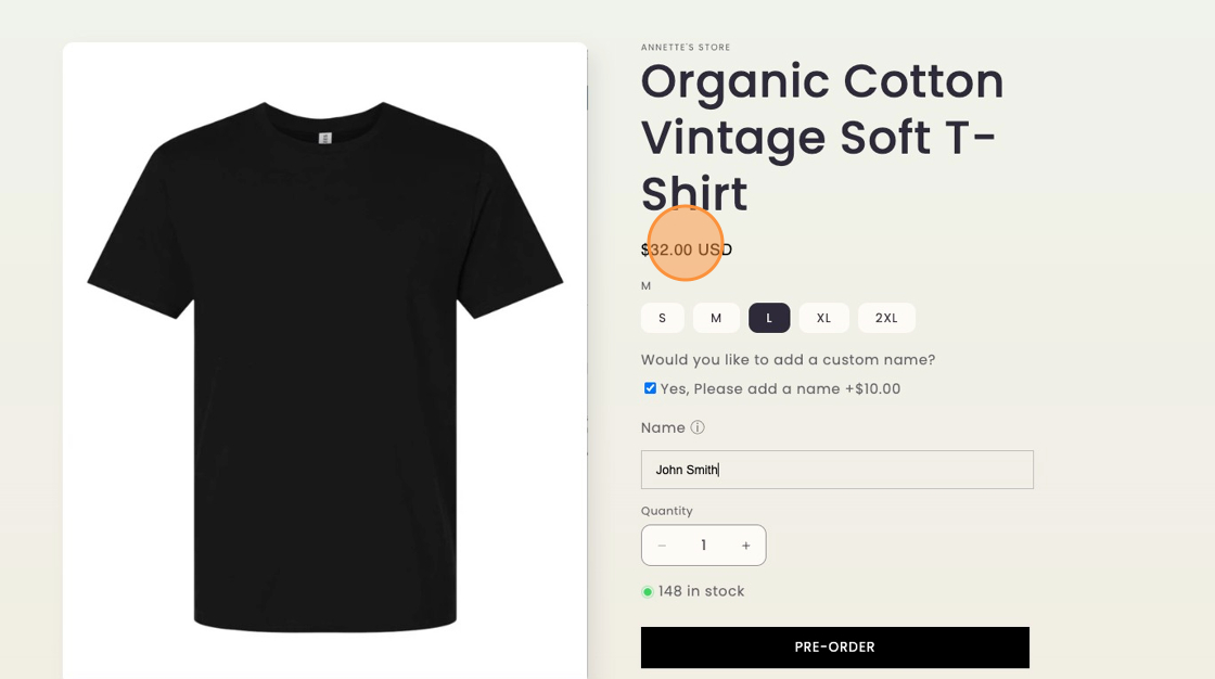 Your product page will now display the updated price when shoppers select options that add a cost.