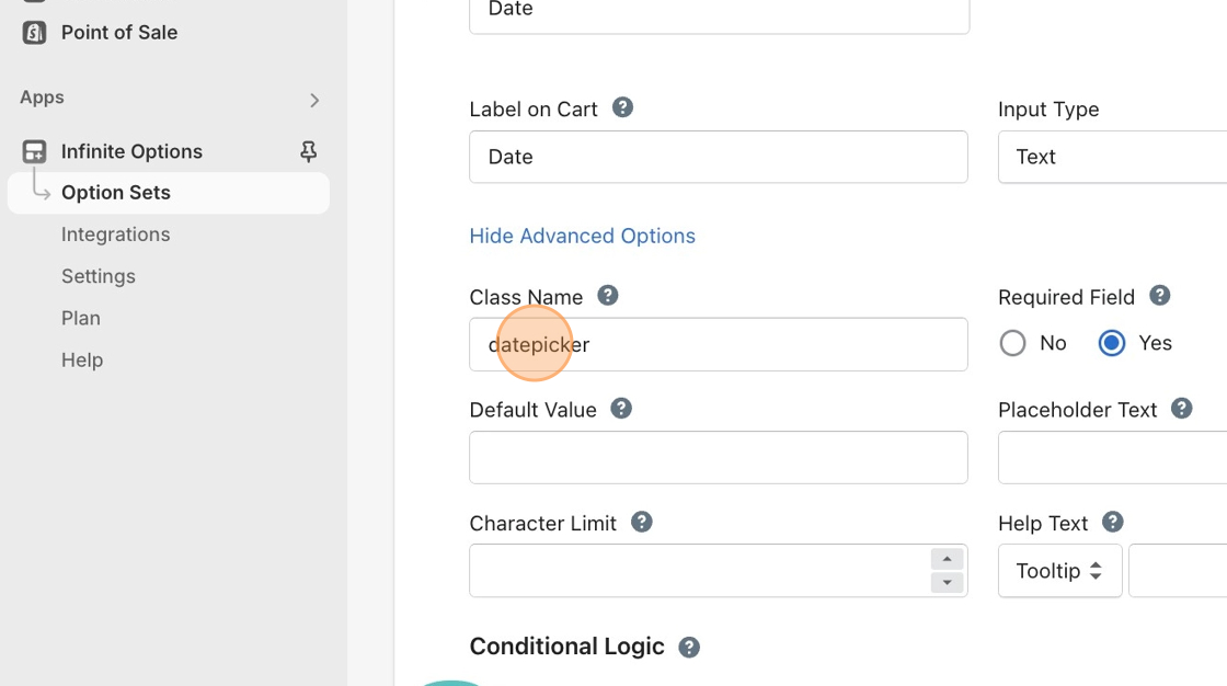 5\. For more customization options for the date picker, check out our guide: [Click here!](https://shoppad.gitbook.io/infinite-options/inputs-and-field-settings/add-a-date-picker-to-your-store)