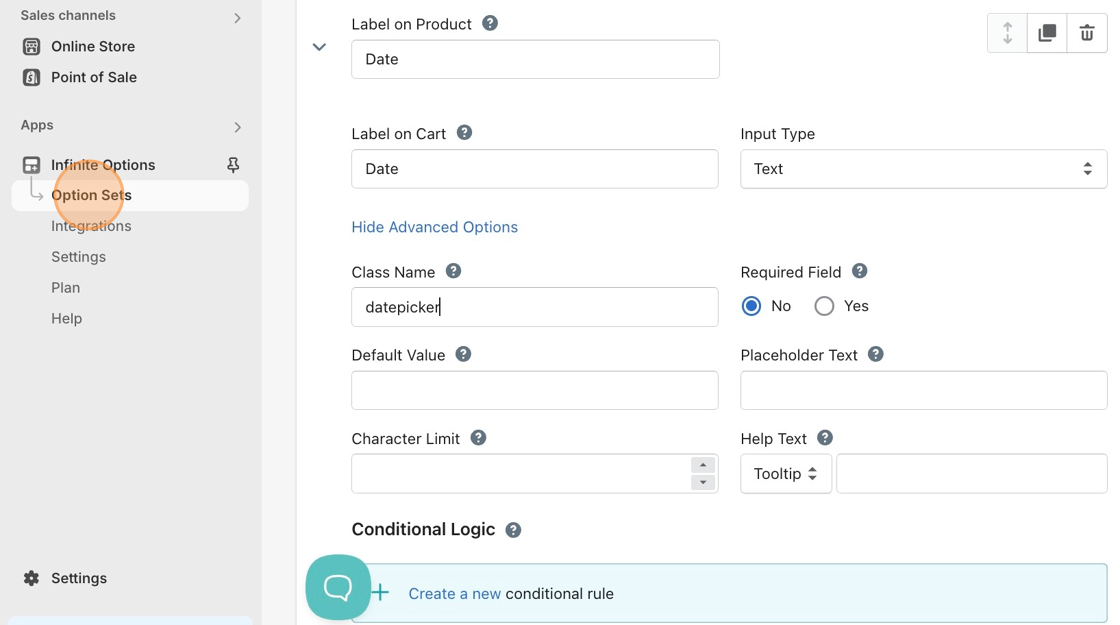 1\. Navigate to the **Option Sets** section of the Infinite Options app in the left sidebar.