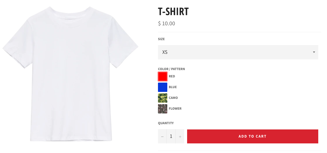 Infinite Options supports attaching colors or images to options. If you have a product with multiple variations, this will allow you to display an image or a color of what the variation would look like.
