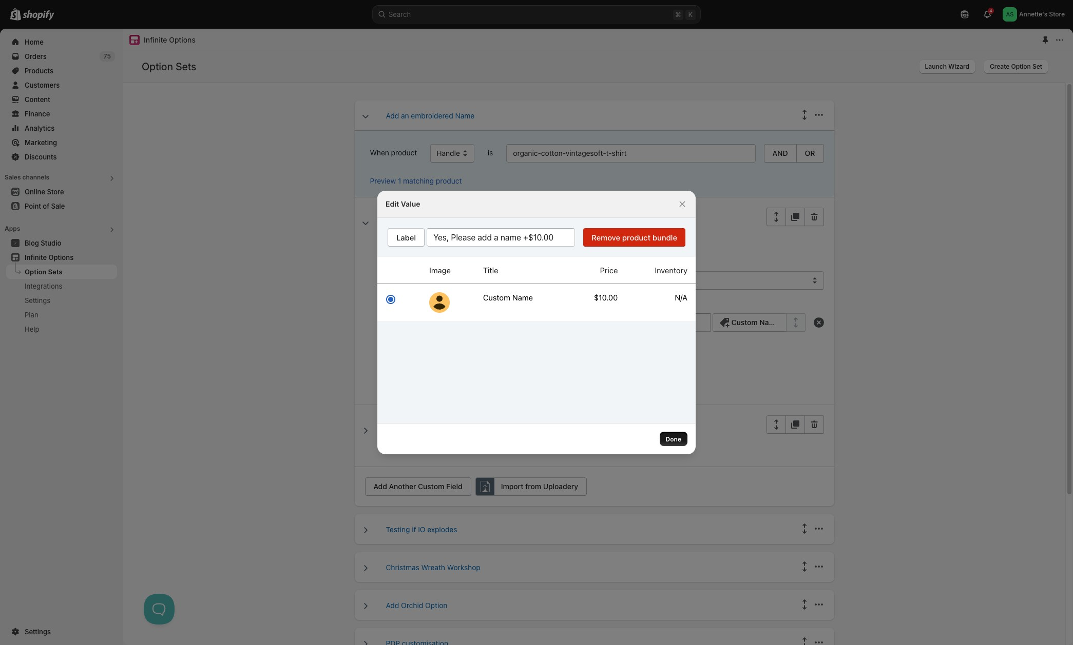2\. Locate the option set with the add-on product and click to examine the bundled product
