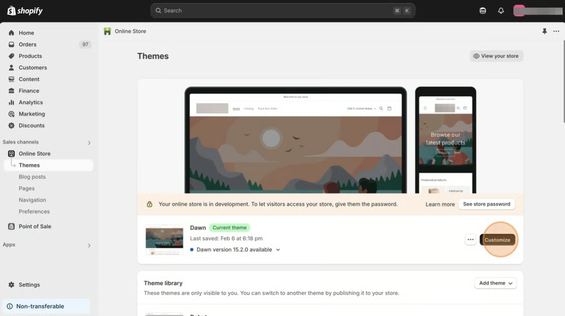 1\. Starting from your Shopify dashboard, click on **Online Store**, and then click on **Themes**.